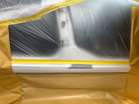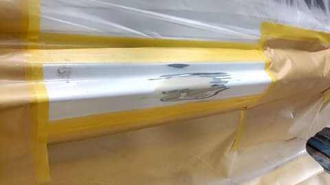 塗装面以外の箇所を塗料が付着しないよう念入りにマスキングで養生をします。