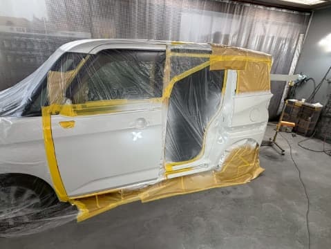 ベテランの塗装職人により塗料の調合が行われ、ベースカラー塗装⇒クリア塗装の順で塗装をします。