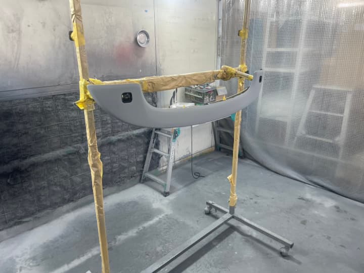 ▼ 塗装はゴミや埃の飛ばない、塗装専用ブースにて塗装をしていきます。