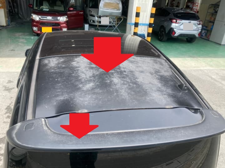 劣化が相当進んでルーフとスポイラーが全面で塗装剥がれが酷い状態になっています。